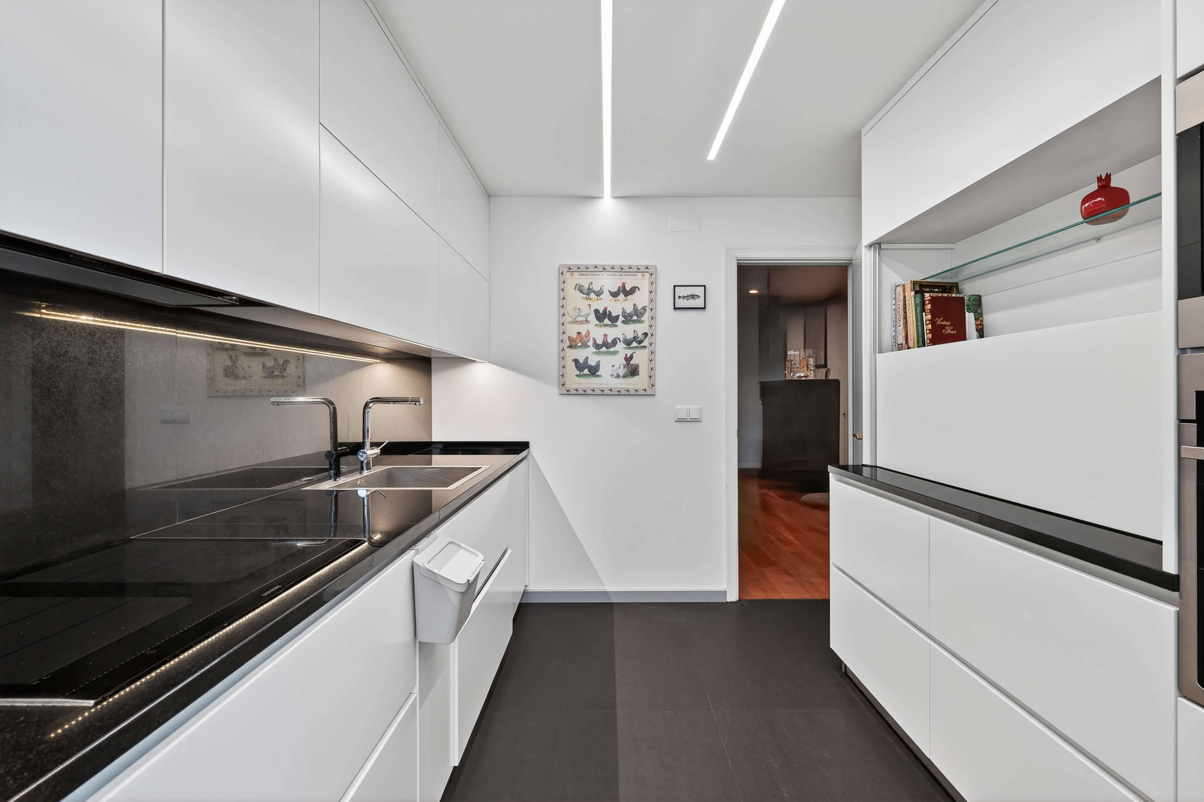 A cozinha, inclui uma península amovível e fica totalmente equipada com electrodomésticos da mais elevada eficiência energética, das marcas AEG, SIEMENS, BOSCH e VULCANO. Junto à cozinha encontramos uma zona de lavandaria, garantindo funcionalidade no dia a dia.