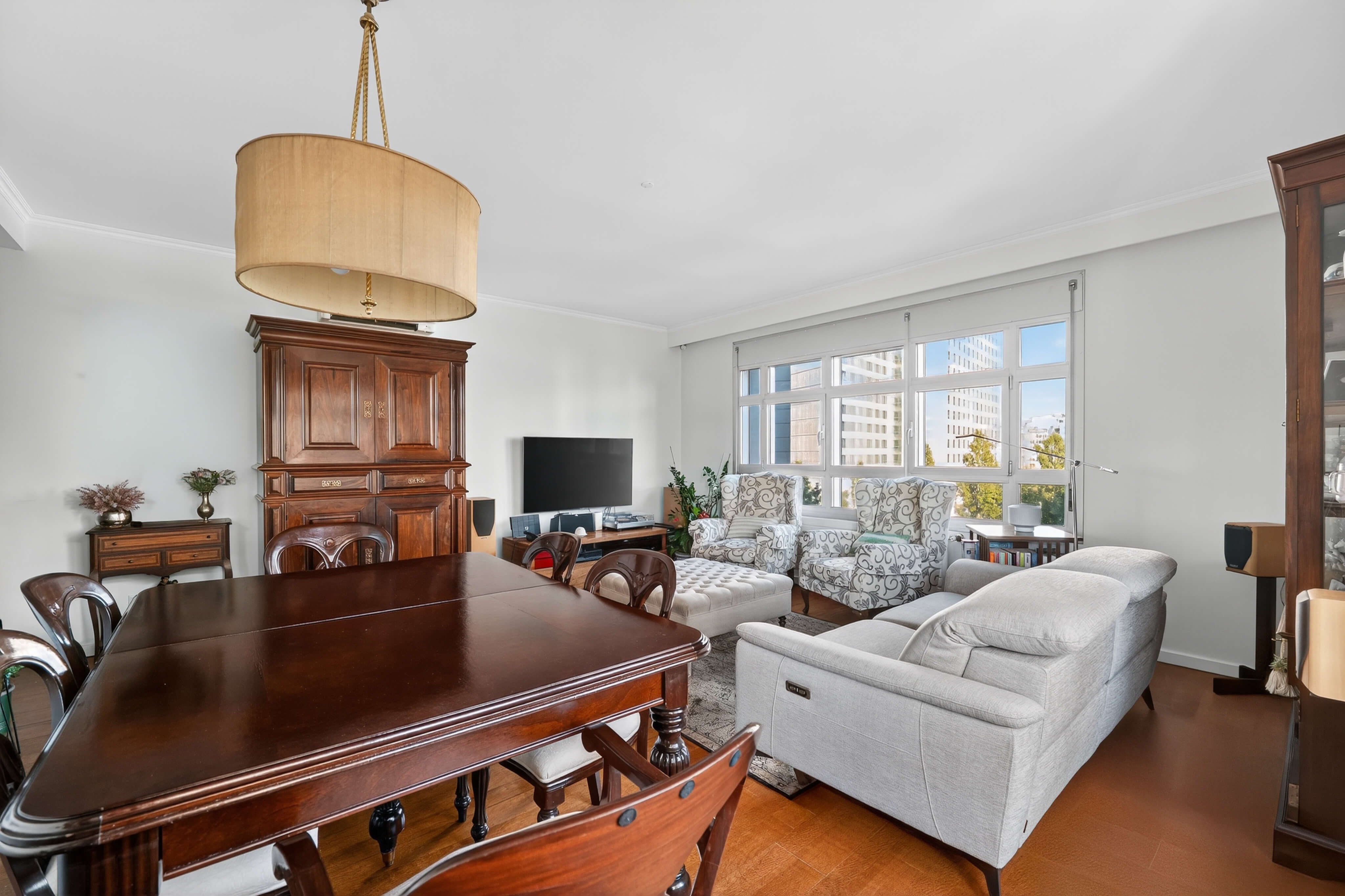 A zona social, com 30m2, é banhada pela luz natural das suas desafogadas duas frentes solares.
